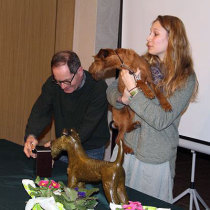 Die Übergabe der Trophäe, die Mr. Dog genannt wird und von der Künstlerin Karin Grudda entworfen und hergestellt worden ist, fand anlässlich des Irish Terrier Symposions in Gudensberg statt. Das Symposium ist eine Veranstaltung von Irish- Online.de und findet einmal jährlich statt. Mr.Dog wird nun ein ganzes Jahr bei Svea Tepper und ihrer Familie verbleiben.