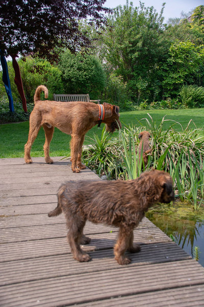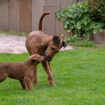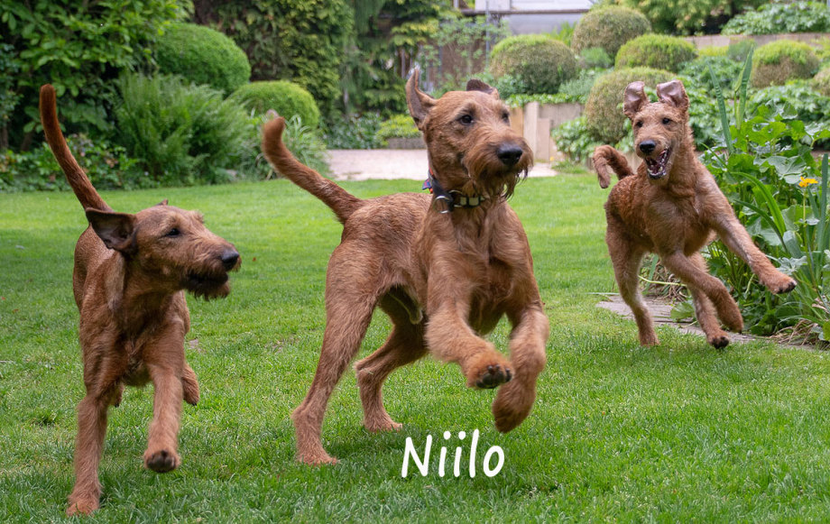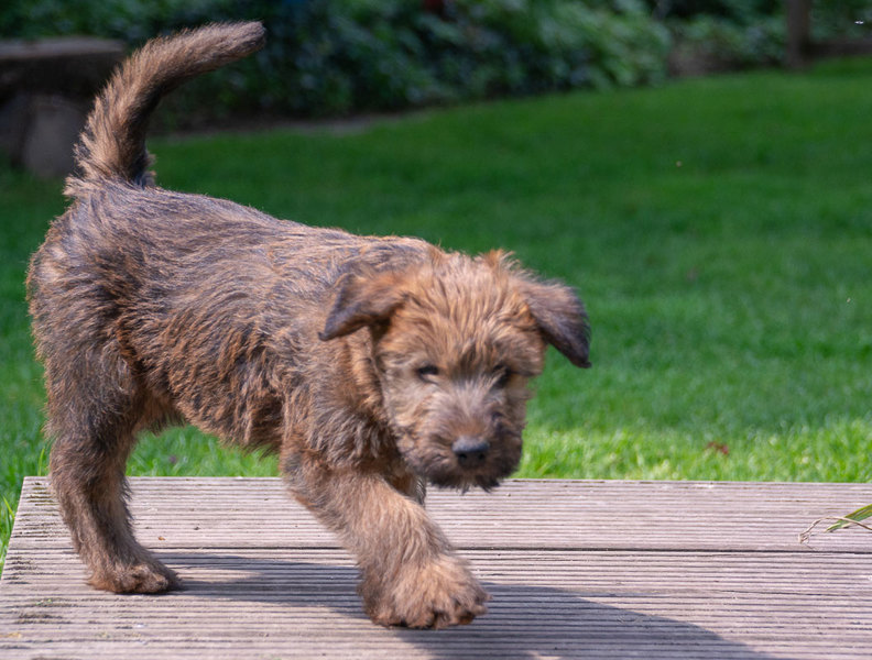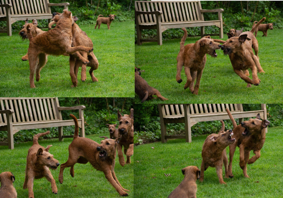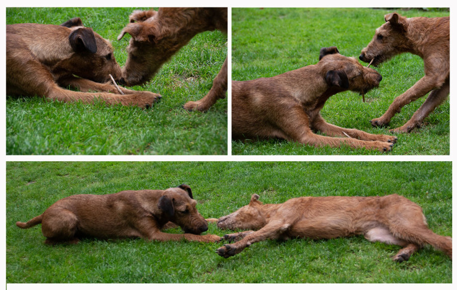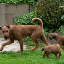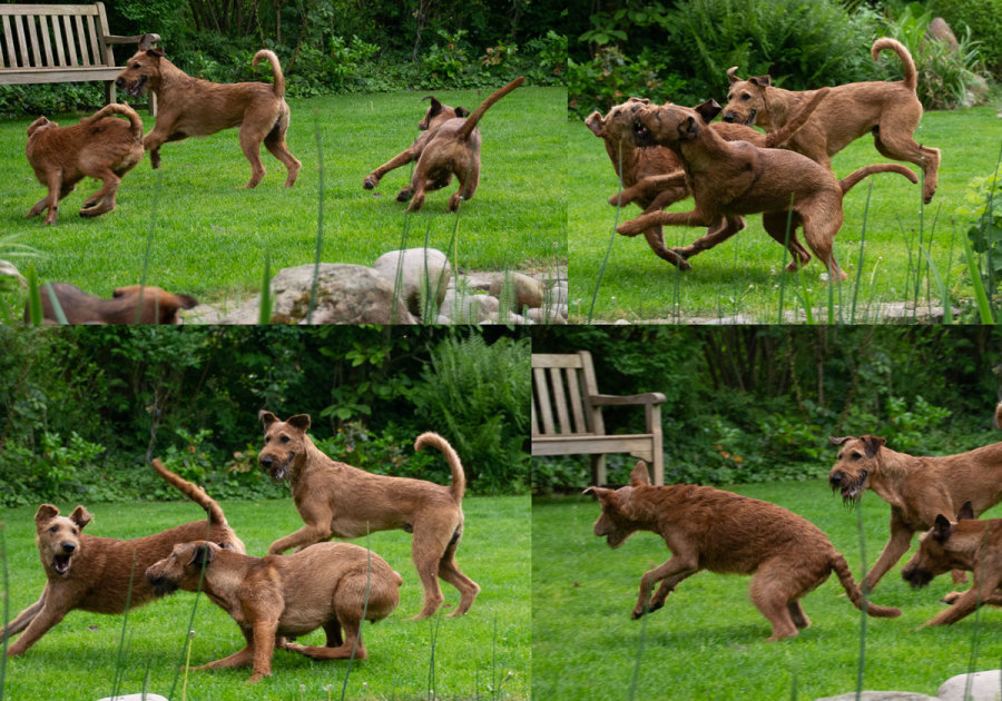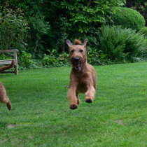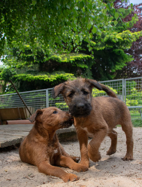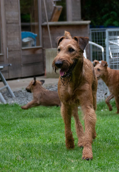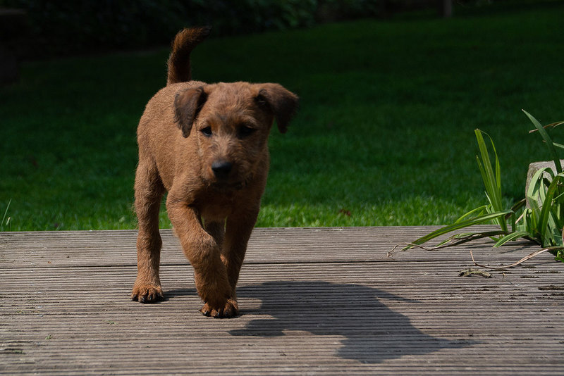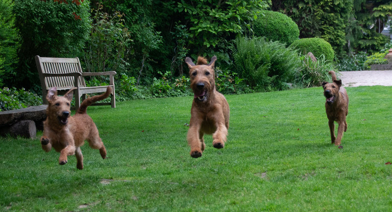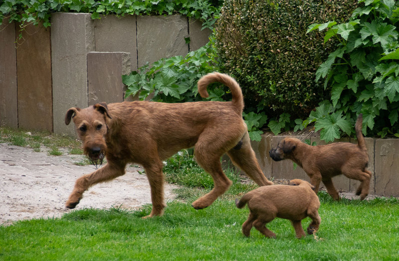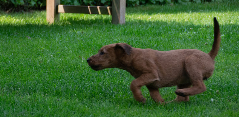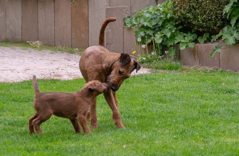 Claudia und Andy haben bei ihrem Besuch viele schöne Bilder von den Welpen und der Toberei gemacht. Irish Terrier haben eine ganz spezielle Auffassung vom Toben. Das zeigen die Bilder auf‘s Allerbeste.