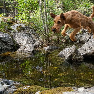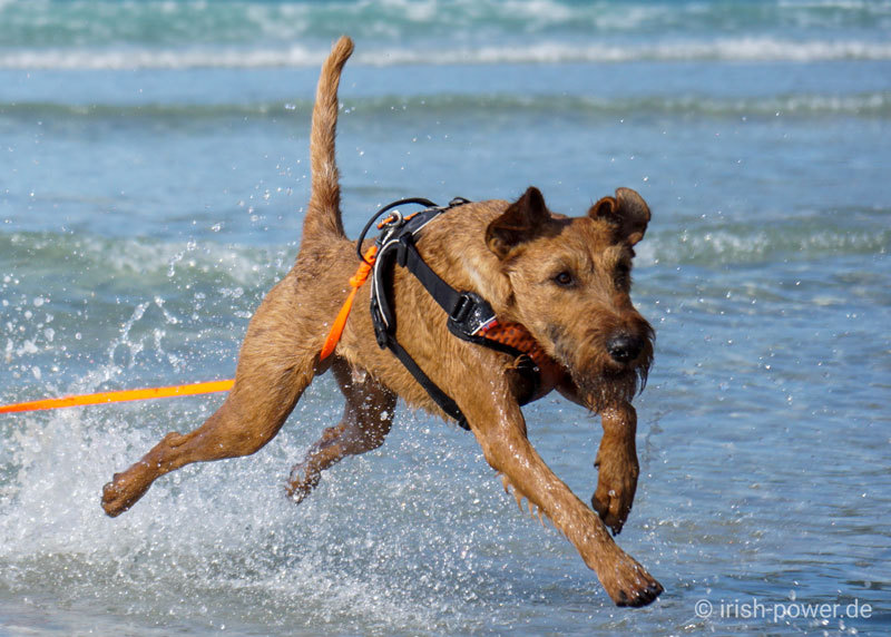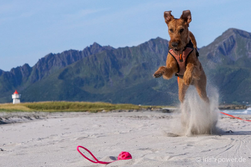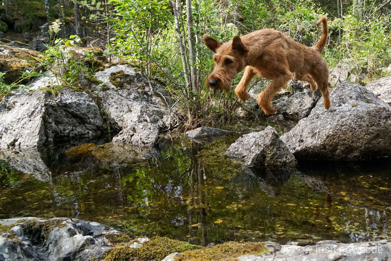 Wie jeder Irish Terrier ist Niilo ist ein echter Allrounder und will natürlich beschäftigt werden. Da ist es gut, dass seine Leute nicht nur aktive Outdoorer sind und daher schon allerhand zu bieten haben, so dass es Niilo nie langweilig wird, sondern auch überaus begabte Fotografen, die es aufs Beste verstehen, hervorragende Bilder von ihrem Niilo zu schießen. So entstehen während dieser Unternehmungen wunderbare, sehr spannende und dynamische Bilder, die anzusehen, einfach nur Spaß macht.