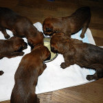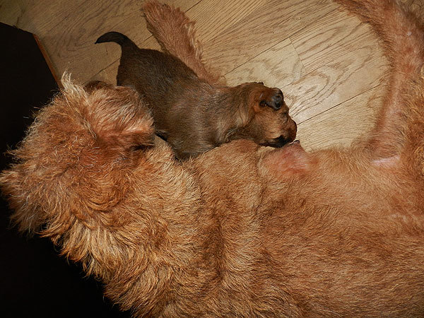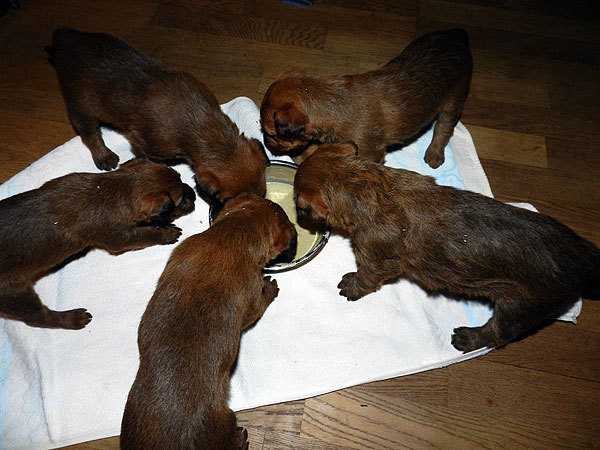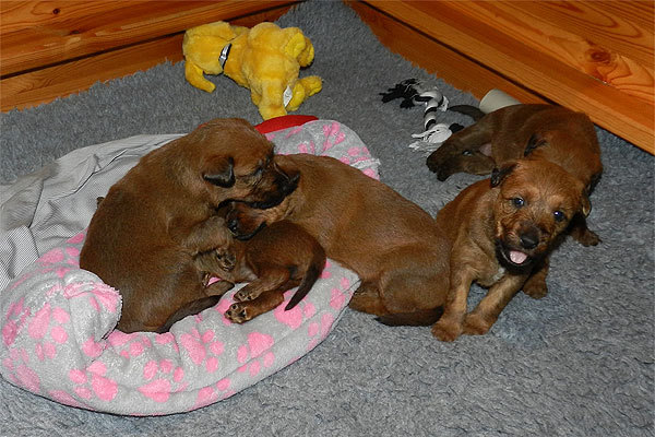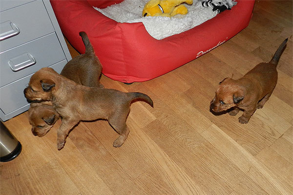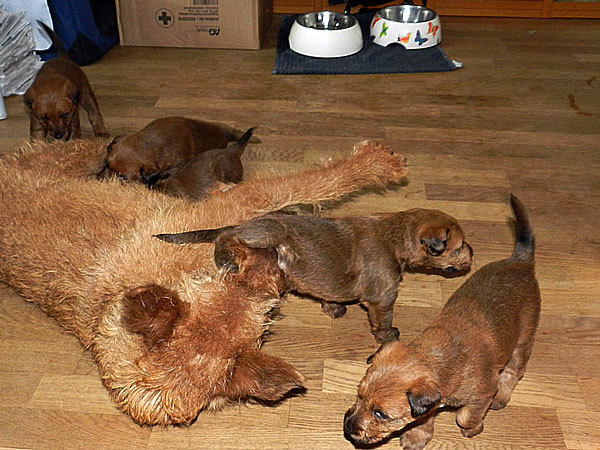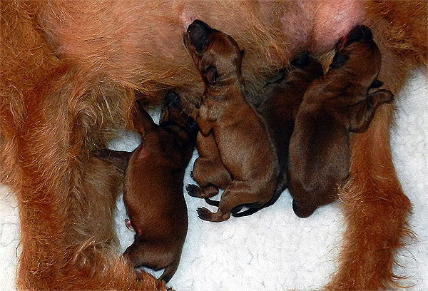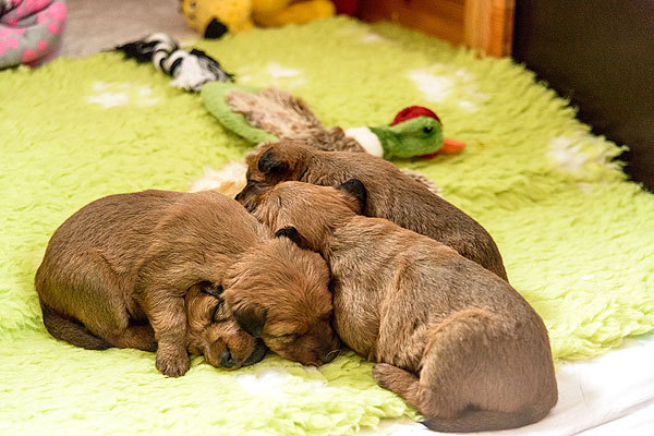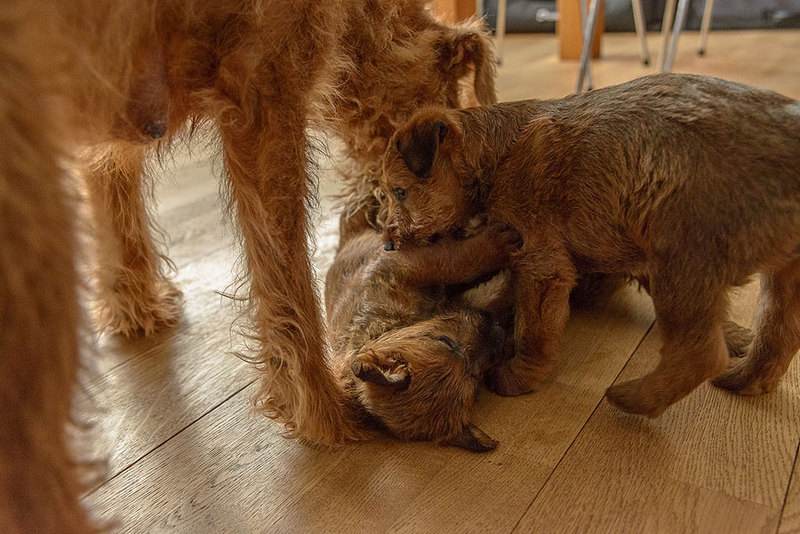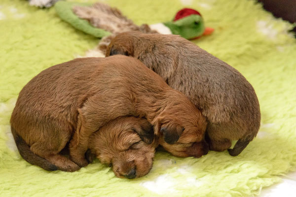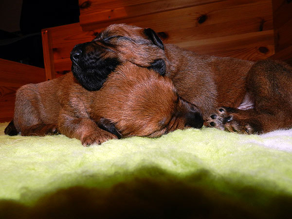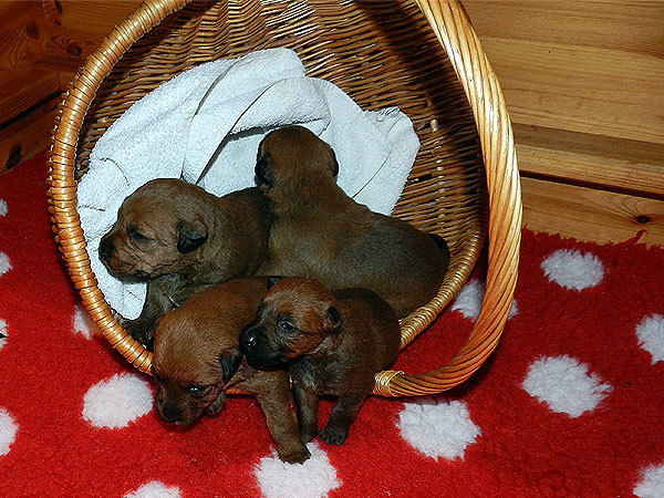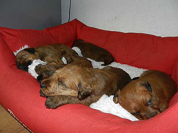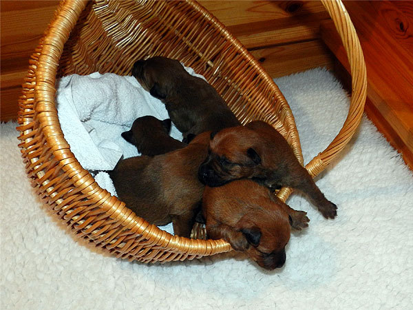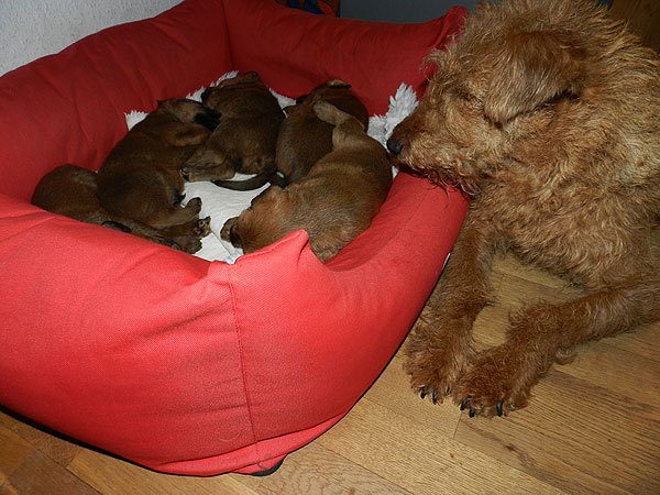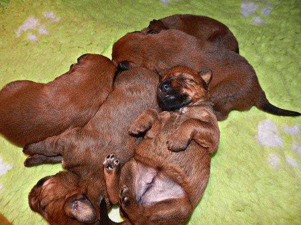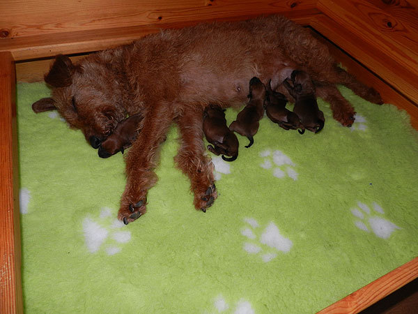 Unser N-Wurf ist angekommen. Aus der Verpaarung Irish Fellow Kennedy und Dizzy's Fae Fairly kamen pünktlich zum Nikolaustag am 6. Dezember ein Rüde und vier Hündinnen zur Welt. WIr freuen uns über diesen Wurf! Die kleinen Nikoläuse sind putzmunter!