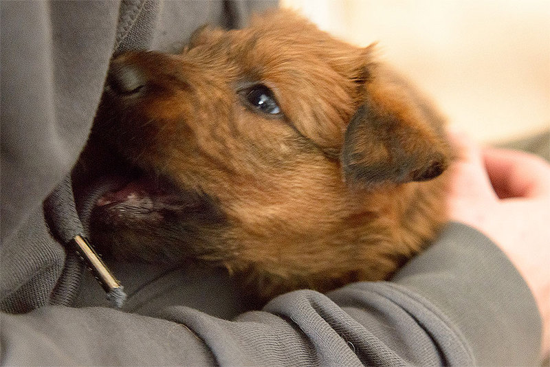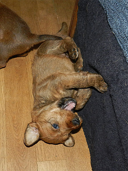 Da guckt die Fae! Die Welpen entwickeln sich prächtig und wuseln schon ganz schön rum..