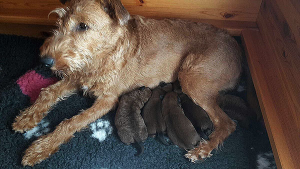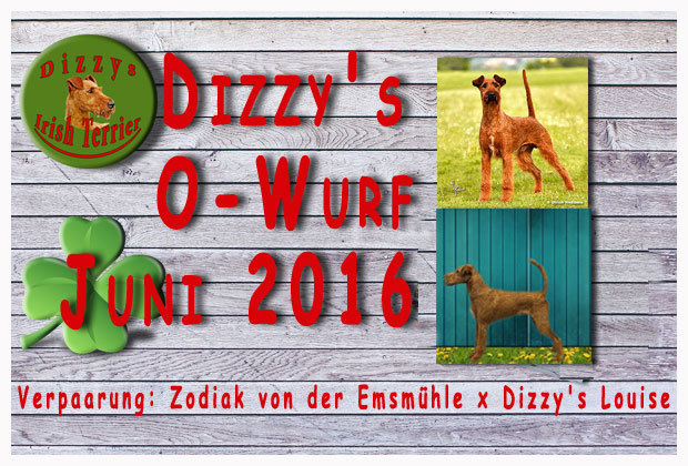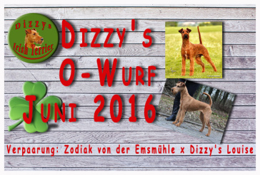 Am 06.06.2016 haben aus der schönen Verpaarung Zodiak von der Emsmühle mit Dizzy's Louise zwei Rüden und drei Hündinnen das Licht der Welt erblickt.