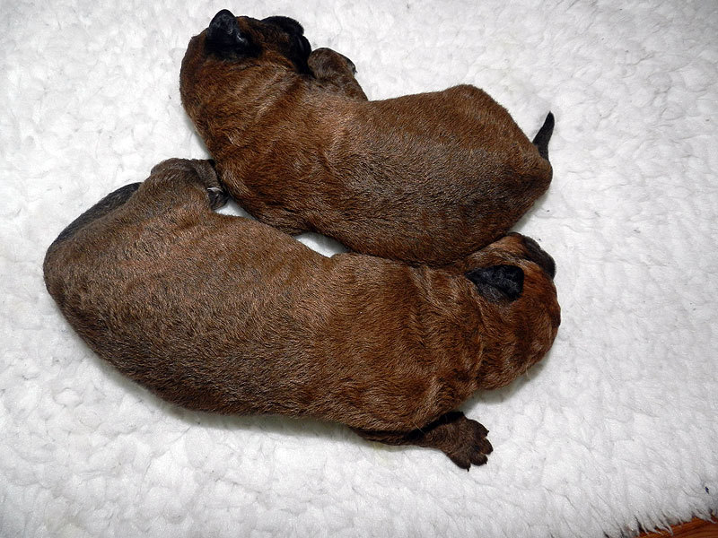 Die Welpen sind wohlgeraten und munter. Unsere Hündin Louise macht alles bestens. Wir freuen uns über diesen gelungenen Wurf.