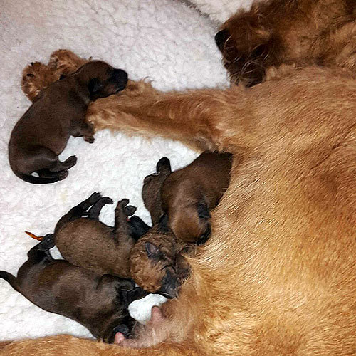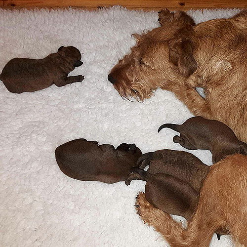 Am 06.06.2016 haben aus der Verpaarung Zodiak von der Emsmühle mit Dizzy's Louise zwei Rüden und drei Hündinnen das