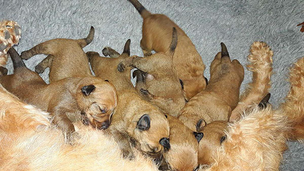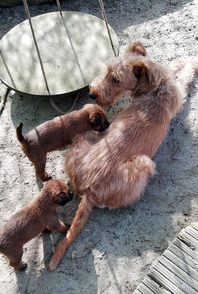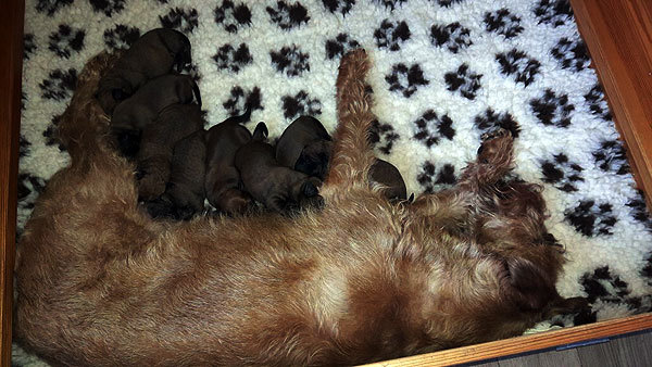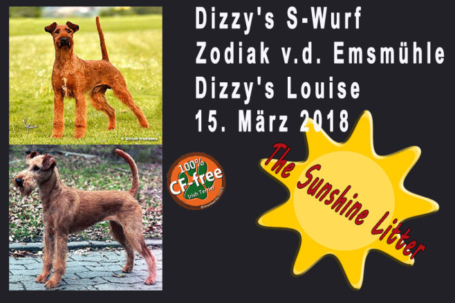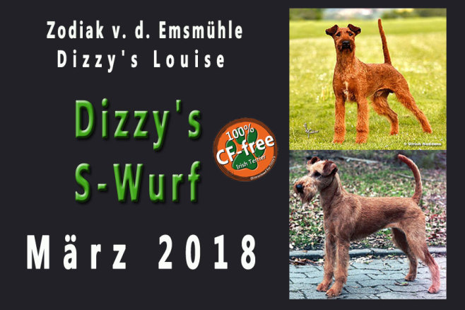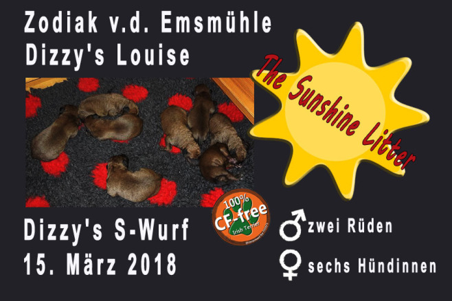 Aus der Verpaarung Zodiak von der Emsmühle (Uomo Mondano von der Emsmühle x Minze von der Emsmühle) mit Dizzy's Louise (Irish Fellow Kennedy x Dizzy`s Fae Fairly) freuen wir uns über zwei Rüden und sechs Hündinnen. Die Kleinen kamen am 15. März zur Welt, sind proper und wohlauf. Auch den Sunshine-Wurf werden wir dokumentieren. Es ist spannend zu sehen, wie sich die Welpen über die Zeit entwickeln.