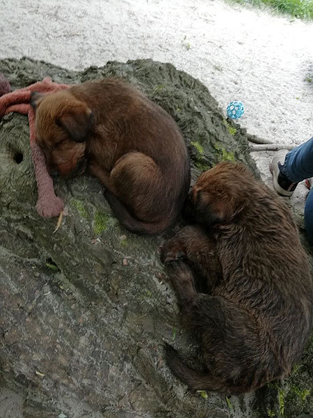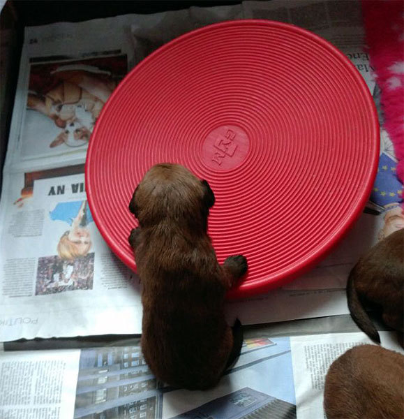 Eine vorbildliche Entwicklung der Welpen. Sie sind putzmunter.